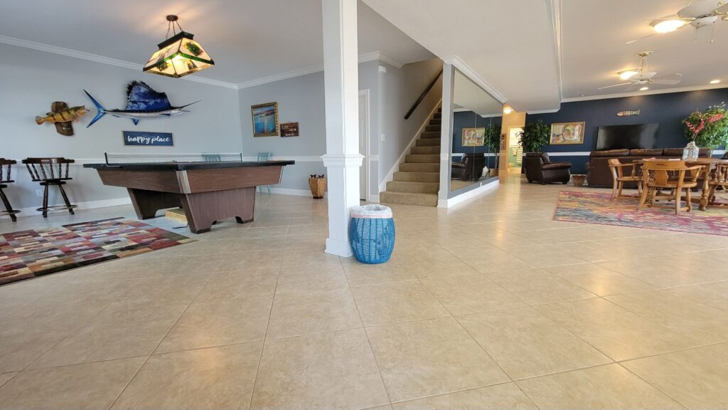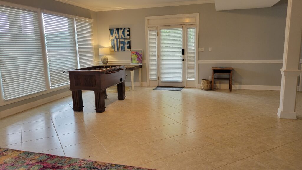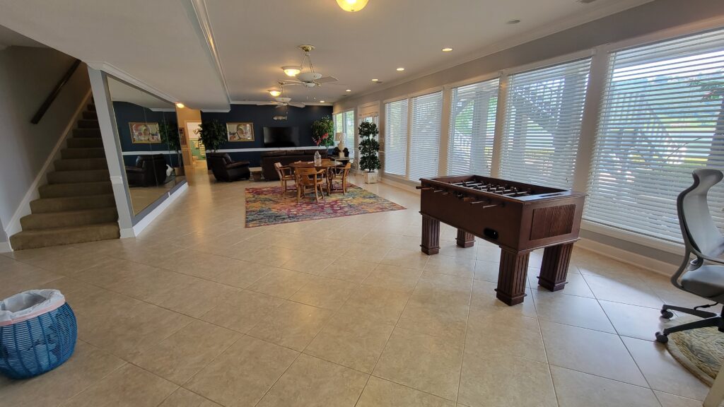 Lower Level Common Area – Pool table (ping pong), Foosball, Game Table, Dining Table, TV Den